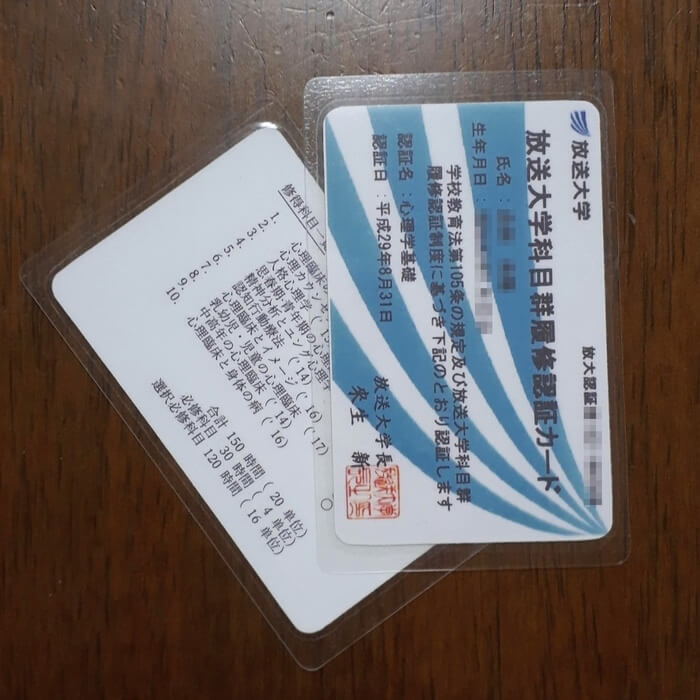 せっかくなので、4年かかった放送大学エキスパートの認証カードにします。私の持っている資格で、取得に最も時間とお金がかかったものですから。