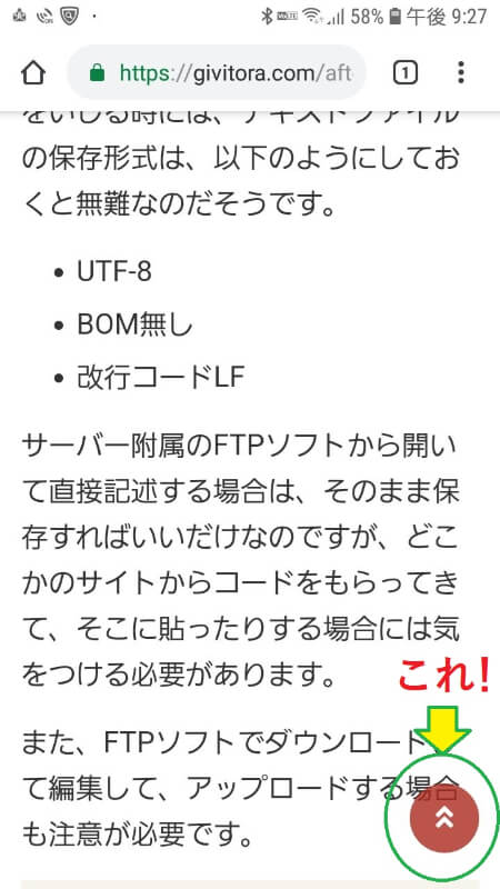 私がやりたかったのは、「上に戻るボタン」を表示することだったのです。。。