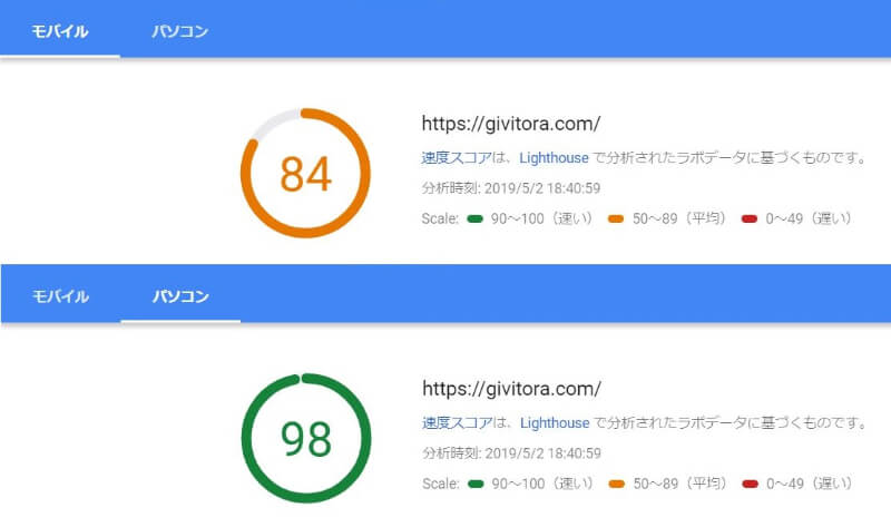特にモバイルは変動が大きかったです。とはいえ、50を切るようなことはなさそうです。プラグインって素敵。